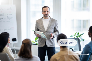 Integrated scheduling tools, chat, forums, whiteboards, and e-commerce for live sessions.